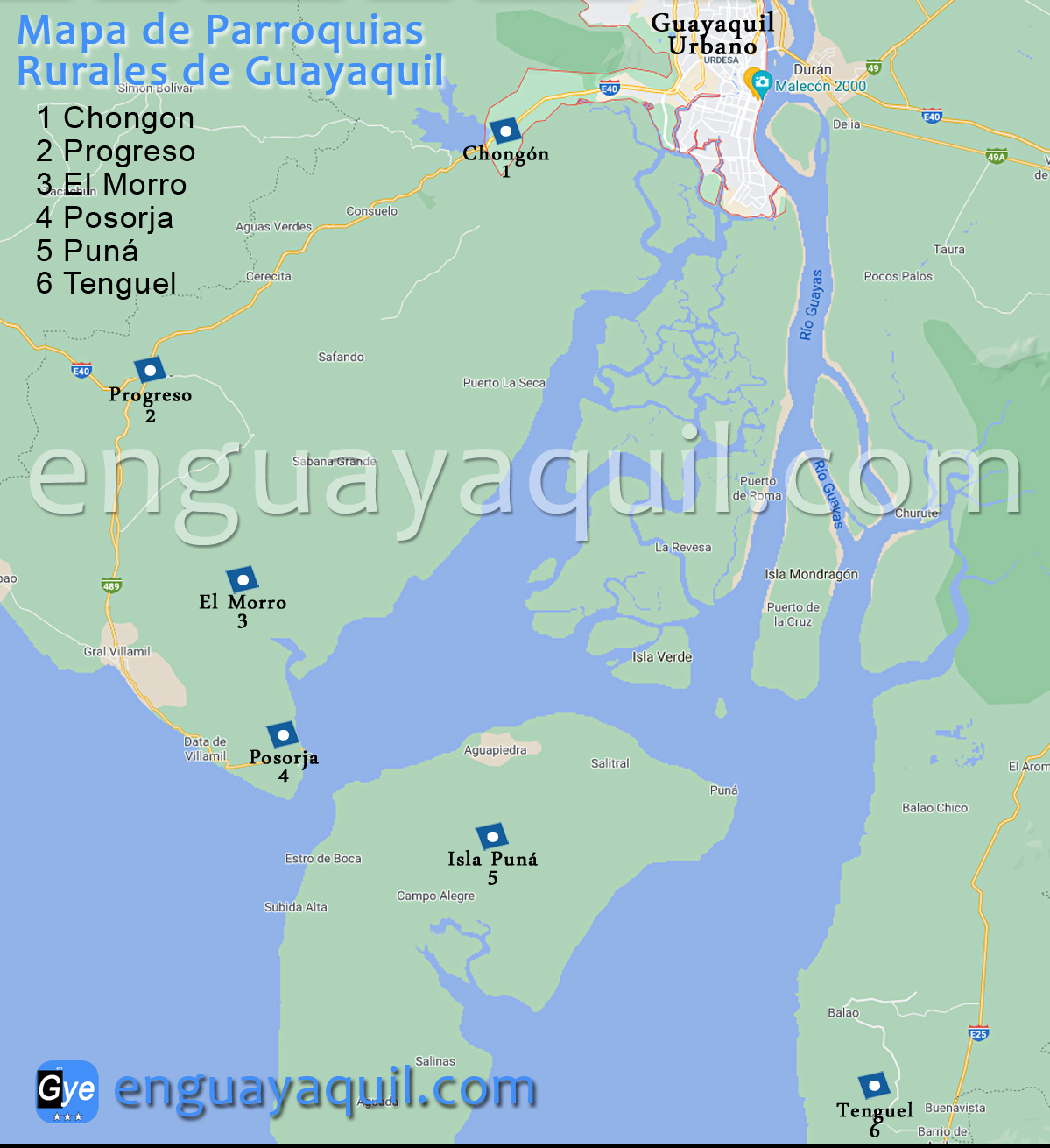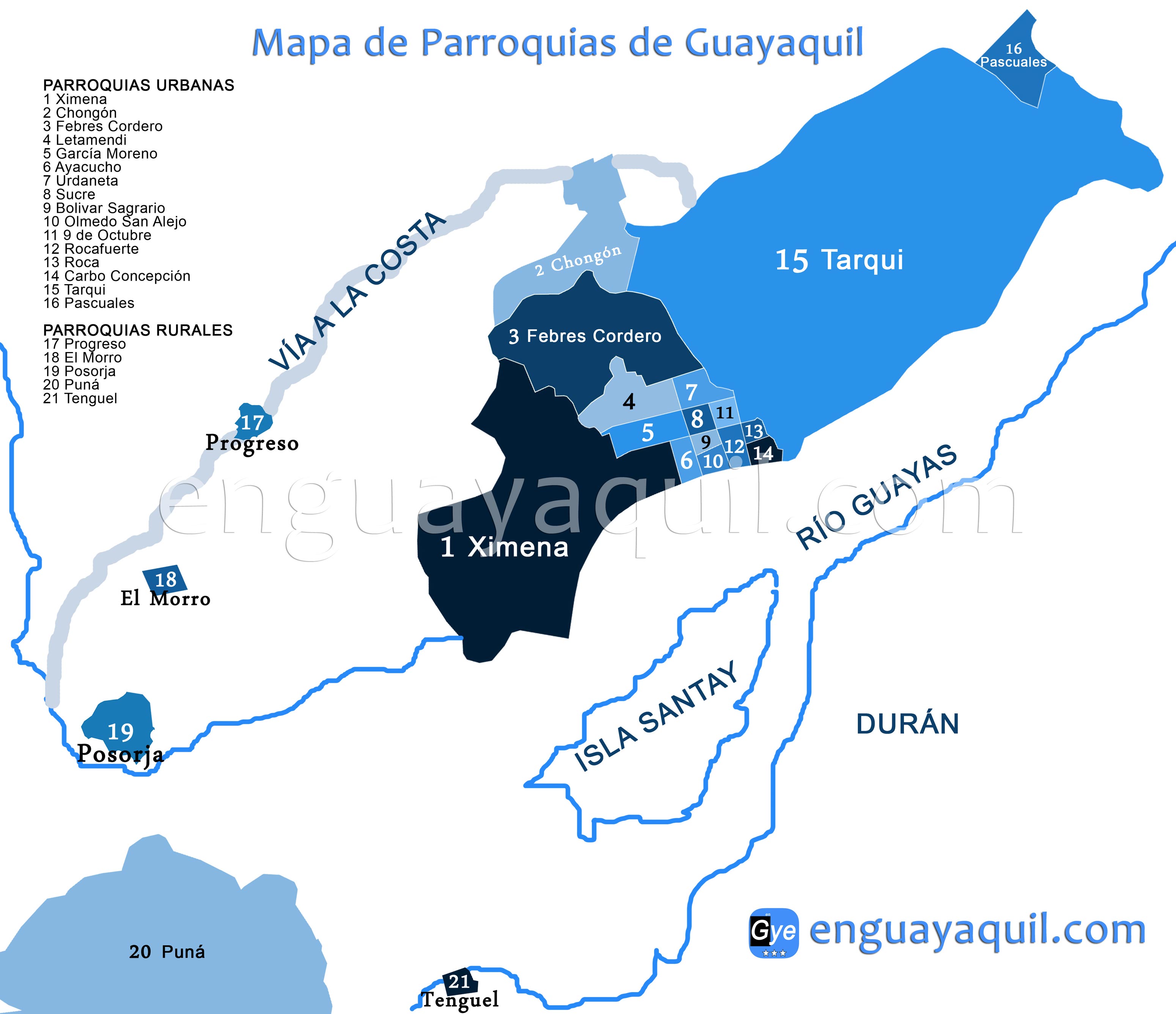 Ver información detallada de todas y cada una de las Parroquias de Guayaquil en el post compartido a continuación.
